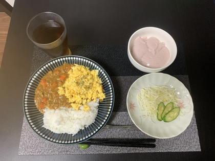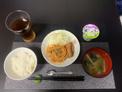 昨夜の残りを少し使ってボリューミーな朝ごはんとなりました。